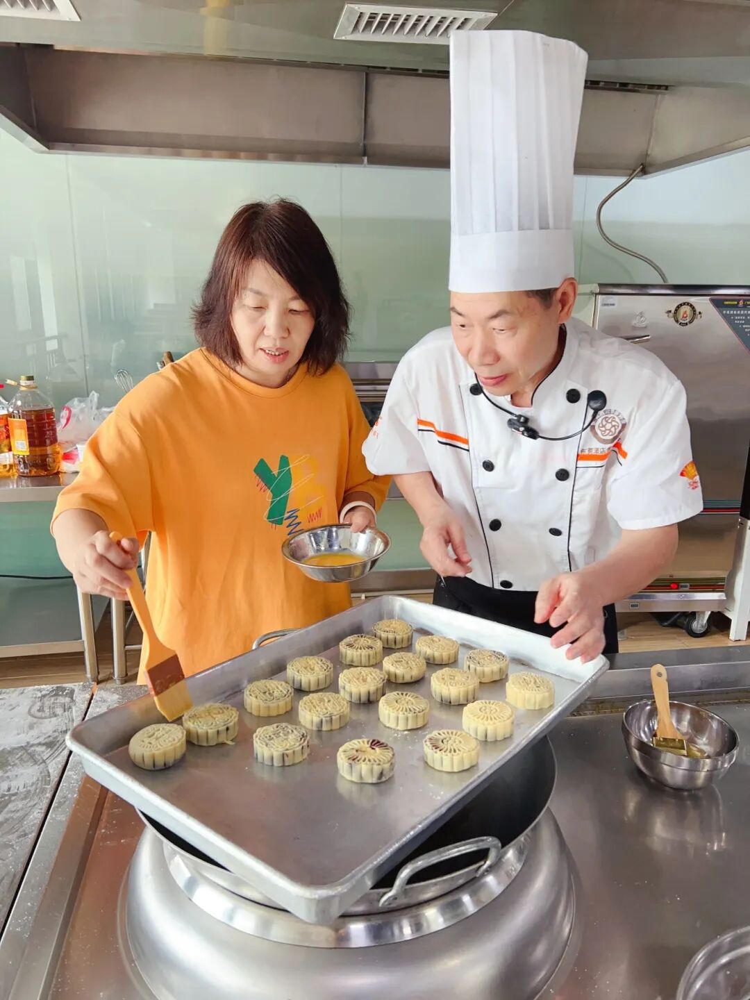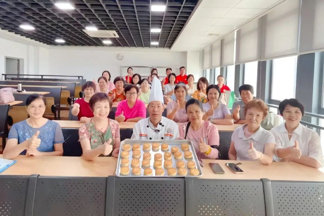 经过大家的巧手制作,一个个金黄饱满的月饼陆续出炉,教室里飘香四溢。学员们纷纷拍照记录,随后将这份饱含心意的手作礼物精心包装,带回家与亲人分享。